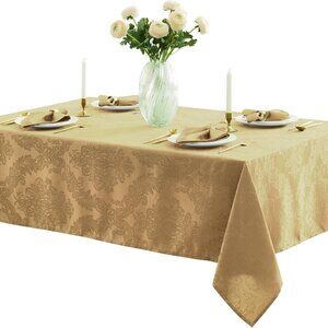 Newbridge Barcelona Damask Fabric Tablecloth, 60 x 102 Inch Rectangle, Gold – N