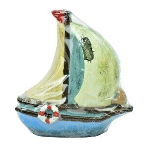 This charming set of ceramic candle holders, skillfully crafted by Newbury Collections, provides an enchanting way to illuminate any space. Designed as a sailboat and lighthouse, each piece is a testament to nautical elegance, capturing the essence of seafaring adventures and coastal allure. The intricate detailing and glazed finish add a touch of sophistication, making it a delightful addition to your home decor.