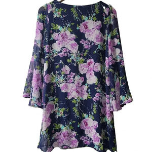 Newbury Custom Dress Women's Size Medium Purple Floral Lined Bell Sleeve