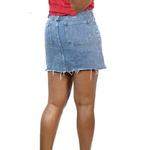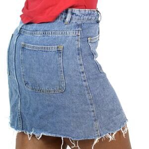 Newbury Kustom Denim Skirt Blue Jean Button Front Mini Rigid Frayed Size Small