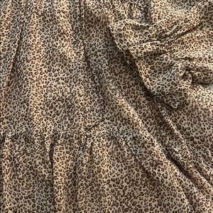 Adorable fully lined leopard dress. Sheer gathered balloon sleeves - Notch neckline with slim ties at neck. Small ruffle at collar.