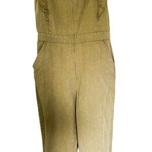Newbury Kustom Washed Green Zipper Sleeveless Straight Leg Jumpsuit Size Medium