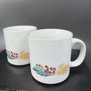 Newcor 1994 Cabin Berries Leaves Stoneware Ceramic Coffee Mug Cup Set2 Mugs Cups