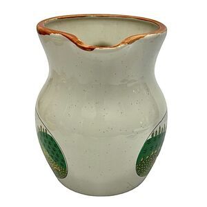 This vintage stoneware water pitcher from Newcor's "Country Village" collection is sure to add a touch of rustic charm to your kitchen or dining room. Made in Japan in the 1970s, this pitcher features a colorful and unmarked design that will make it a standout piece in your collection.