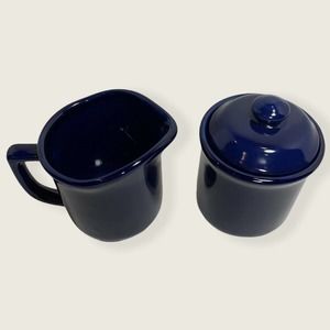 Newcor Stoneware Sugar And Creamer Set Cobalt Blue China Mid Century Modern