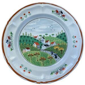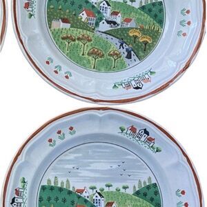 Newcor Stoneware 10 1/2 In Large Dinner Plates Country Village Scene Japan Set 2