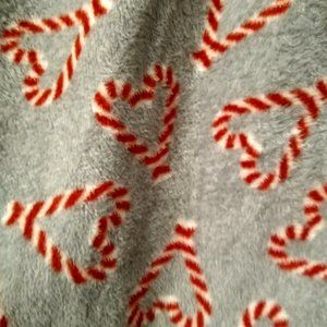 These newer lounge pants/PJ bottoms are so soft! The candy cane heart print is the same on both sides of the pants. Since these pants were made with 100% polyester, they clean easily in the washing machine.