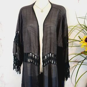 Excellent condition no flaws brand new never worn NWT in bag black longer length swimsuit coverup lightweight gauzy material. High quality and so cute on! One size fits most up to an XL