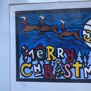 New in packaging print of Santa with reindeer with “Merry Christmas “