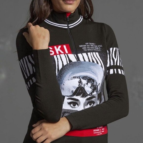 Newland Ski Gstaad Half Zip Sweater Pullover Audrey Hepburn Black White Red L