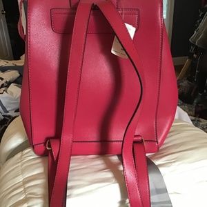 Cherry red gold accent backpack from Newman’s. Very spacey interior, zippers still in plastic. This is a fab piece for any city dwellers or active moms. The color is brilliant.