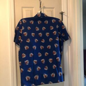 This is more of a royal blue than the stock photo . Actual pictures of the shirt are the true Royal blue .