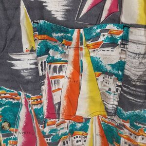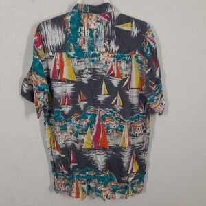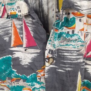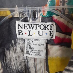 Made from comfortable rayon material, this shirt is perfect for any occasion. It has pockets and comes in a size S, with a multicolor design. The shirt is a great choice for those who love Hawaiian and classic themes. Get ready to sail away in style with this Newport Blue button-up shirt!