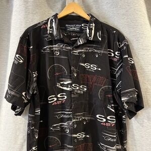 Newport Blue Black Button Down GM Chevrolet SS 427 396 Hawaiian Shirt Sz XL