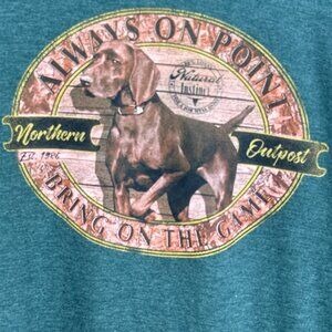 This men’s Newport Blue T-shirt features a dog graphic with “Always On Point” text. Crafted in a soft green cotton blend, the comfortable classic-fit style has short sleeves and a crew neck.