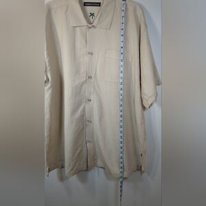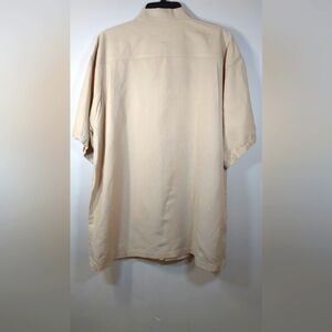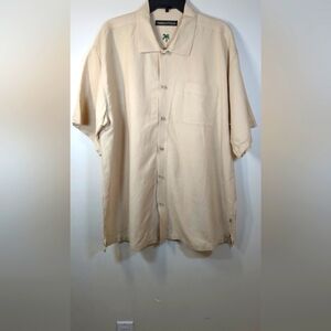 Newport Blue button down short sleeve linen blend cream shirt, size XL