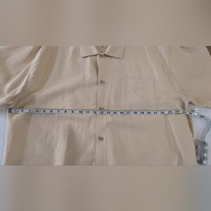 Newport Blue button down short sleeve linen blend cream shirt, size XL , small stain on sleeve... see pics, pre-owned great Condition