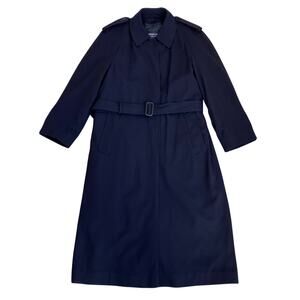 Newport Harbor Womens Sz 8P Vtg Wool Trench Coat Zipout Insulated Lining Navy
