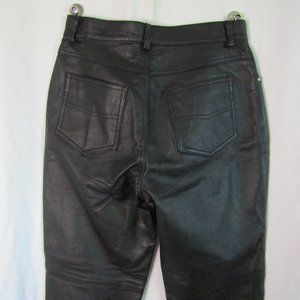 - Black 100% leather pants with front and back pockets