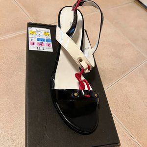 Black, red and white patent heels