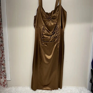 Newport News Bronze Color Evening Dress . Silky Great Condition Preowned with minimal wear