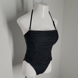 Newport News Classy Ruched Slimming Halter One-Piece Swimsuit ~ Sz 12 ~ Black