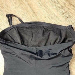 Newport News Classy Ruched Slimming One-Piece Swimsuit ~ Sz 12 ~ Black ~ Removable Straps ~ 15" Arm Pit to Arm Pit ~ 10.5" Across Waist ~ 14.5" Across Hips ~ 23.5" Length (Not including Strap)