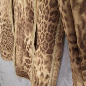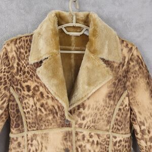 Newport News Coat Jacket Size M Faux Seude Fur Liner Leopard Button Pockets Y2k