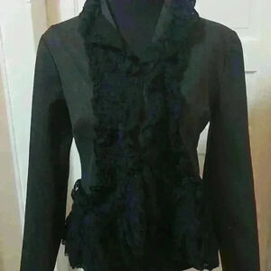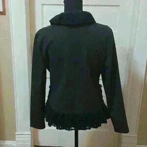 Excellent condition. Beautiful lace makes this classy and feminine for work or evening out. Hook and eye closure. 2 lace pockets. Dry clean only. Size 12. Pit to pit measures 18".
