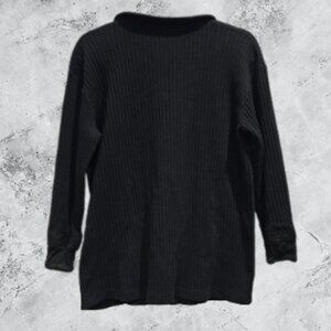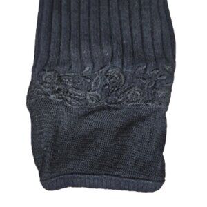 Newport News Easy Style Black Ribbed Lacey Embroidered Sweater - M