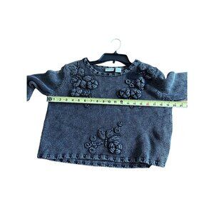 Newport News Gray Floral Embroidered Cropped Sweater S 3D Roses Missing One