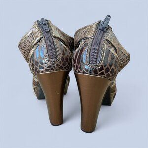 Adorably charming and comfortable heels from Newport News. Featuring a fashionable brown hue and an open toe design, square heel, these shoes possess a distinctive allure. Pre-owned but in good shape with minor scratches on the heel!