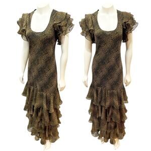 Newport News Shape FX Leopard Ruffle Maxi Gown Sz 14