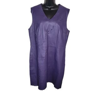 Great vintage condition. Some drying around the collar of the jacket. Women's plus size Newport News Styleworks Vintage Purple Leather 2 Piece Jacket Dress 18. 100% leather, 80s, retro,chic, seprates.