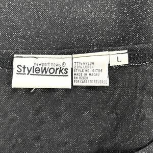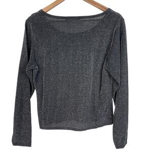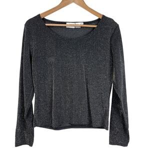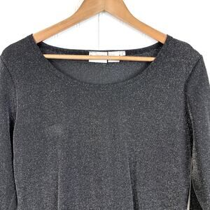 Newport News Top Womens L Black Disco Sheer Metallic Y2K Rave Festival Stretchy