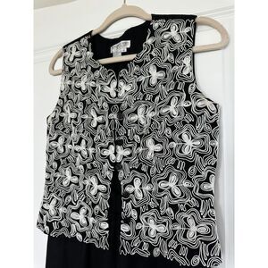 Newport News sleeveless jumpsuit in a timeless black and white linen blend. Women’s size 6. Features a lightweight, breathable fabric with a flattering tailored fit.