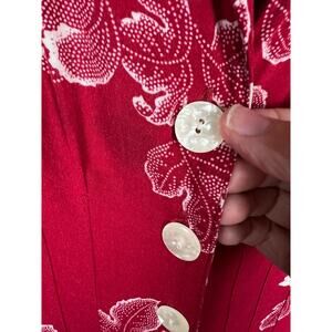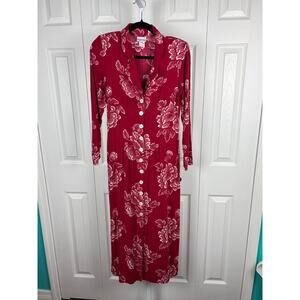 Newport News Women Vintage Red White Floral Button Up Maxi Dress Rayon Size 4