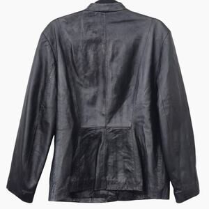 Newport News Women’s Leather Jacket L Retro Minimalist Genuine Black Button Down