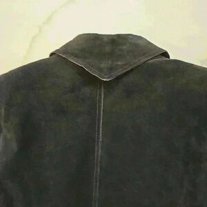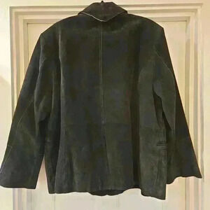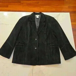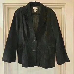 Newport News Womens Suede Leather Blazer Jacket Bell Sleeves Black Size 20W