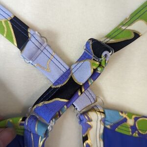bathing suit is new with tags and in excellent condition. Size is 20w. Purple (periwinkle) color with criss-cross front adjustable cross back straps. material is nylon and lycra so it has some stretch. ask any questions you might have. We do respond promptly.