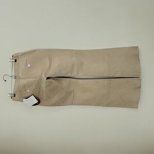 Newport News genuine leather beige Bootcut pants pockets zip button entry women's size 4. NWT