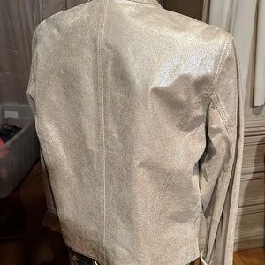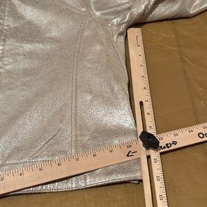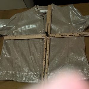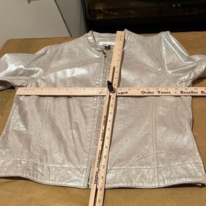 Newport News size 14 silver metallic leather jacket lined mandarin collar