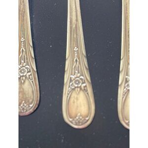 This is a beautiful and sweet floral pattern with a teardrop shape design at the end of the utensil. These are all silver plate, in great shape, with the typical vintage wear of fine scratches and tarnish.