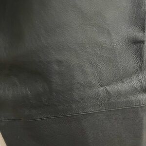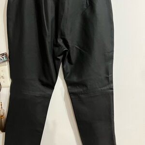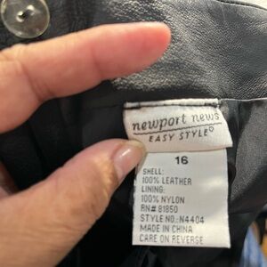 These Newport News leather pants in size 16 feature a solid black color with a waist size of 34 inches and a 30-inch inseam. The pants have a zipper and button closure, making them ideal for casual occasions. Made of leather, these dress pants from Newport News are accented with a zipper detail, adding a stylish touch to the overall design.