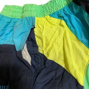 Newport Blue Green, Black, yellow and blue Color block Swim trunks with liner NWOT