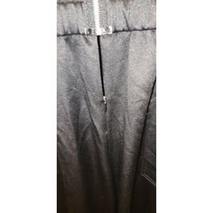 Black long sleeve zippered jumpsuit has encased elastic waist and belt loops