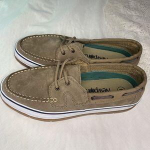 Newports Boat Shoes Suede Lace Up Loafers Rubber Soles Men's Size 8 Tan Brown