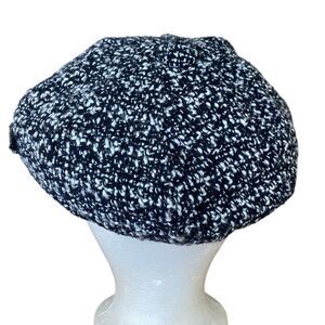 News Boy Cap Black White Tweed Hat with Rhinestone Applique Fully Lined