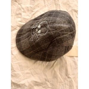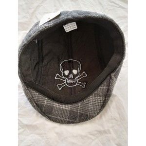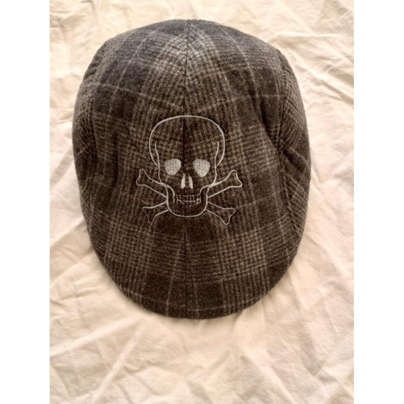 Newsboy Gray Fleece Cap with Embroidered Skull & Crossbones