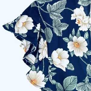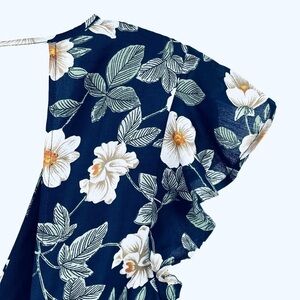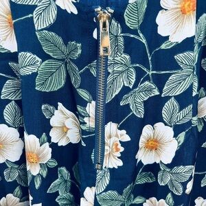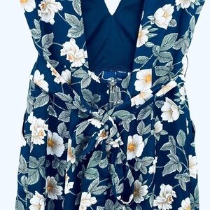 Brand New. Never worn. This blue floral jumpsuit from Shop17 is figure flattering, edgy and trendy.